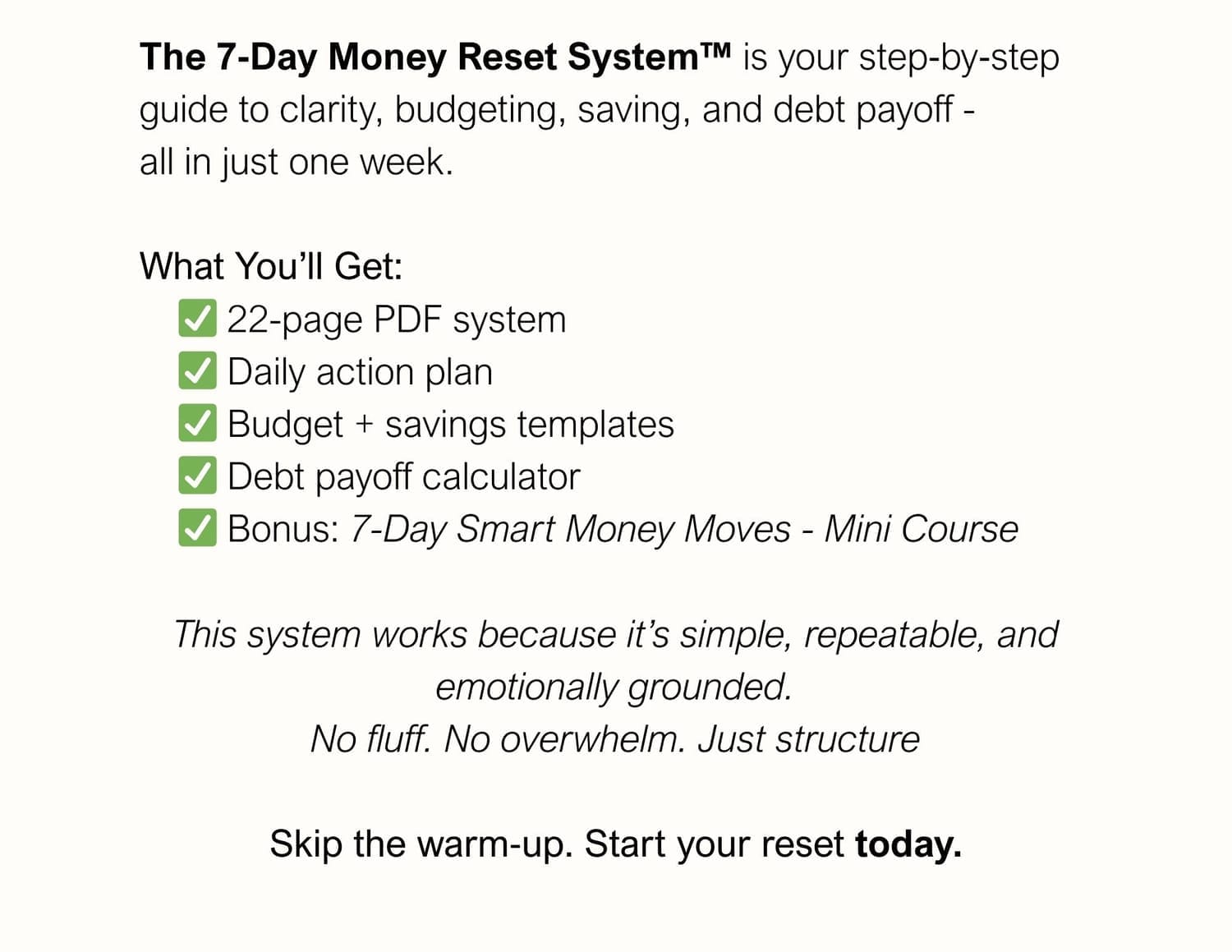 The 7-Day Reset Mini-Course is designed to help you reclaim clarity, calm, and control fast.